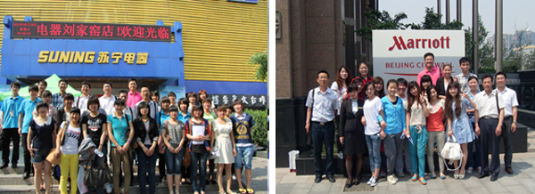 北京是近两年学生就业较为集中的区域,为了进一步加强与企业的联系,不断拓展合作空间,工贸系此行还到北京苏宁电器、北京中远物流股份有限公司、北京荣康至健有限公司、北京万豪大酒店、北京拉斐特酒店、瑞麟湾度假村及北京华腾美居酒店等7家实习与就业基地进行走访与会谈,就如何进一步丰富合作模式,校企合作人才培养方面等交换了意见,听取了用人单位对我院人才培养质量、教育教学改革和综合素质培养等方面的意见和建议。企业也表示,我院培养的学生综合素质高,工作责任心强,技能高上手快,具有很强的学习能力,很多学生已成长为企业的骨干力量,愿意与我院建立校企合作的长效机制,将学校的教学活动和企业的生产过程紧密结合,共同打造以市场需求为导向,以订单培养为驱动,以工作任务为载体,企业参与培训的工学结合的人才培养模式。企业今年6月份还将到我院回访,进一步商讨合作项目并预定2013届毕业生。