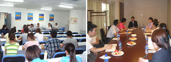 为了深入了解企业对员工职业素养的基本要求,加强学生的校外实训基地建设,拓宽学生就业渠道,进一步加强与企业的沟通交流,增强工贸系服务社会的能力,2012年05月18日至19日,工商管理系党总支书记田勤称、副主任金宏义、乔哲和专业教师等一行五人在北京进行走访慰问,通过企业现场论文答辩、优秀毕业生回访、顶岗实习学生座谈会、校企对接洽谈会、参观考察企业等形式,围绕企业人才需求、毕业生就业质量、“订单”培养和服务企业等方面与企业单位进行了深入考察与交流。